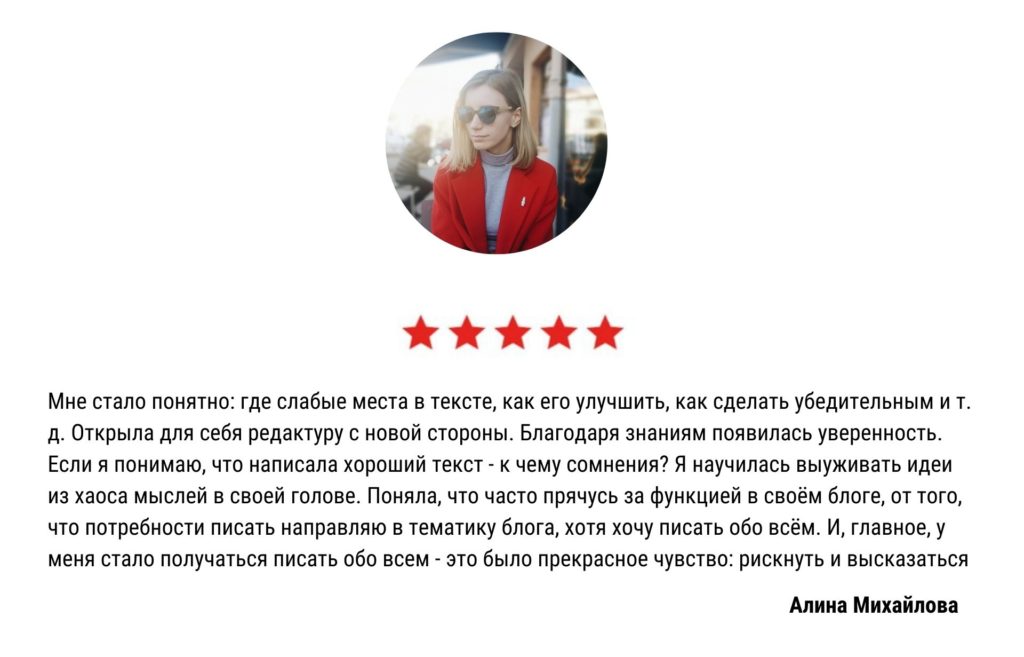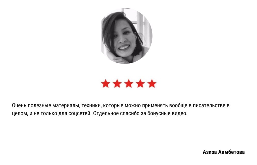 Для меня каждая мастерская уже бесценна. Мне очень понравились задания по теме курса. Очень хорошо продуманы. Прекрасные литературные примеры. Теперь я в каждом тексте вижу тропы и фигуры.
